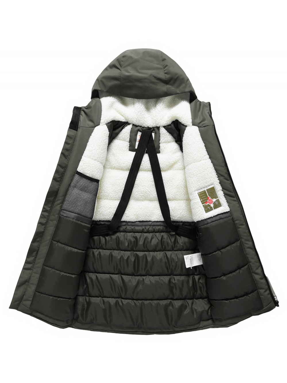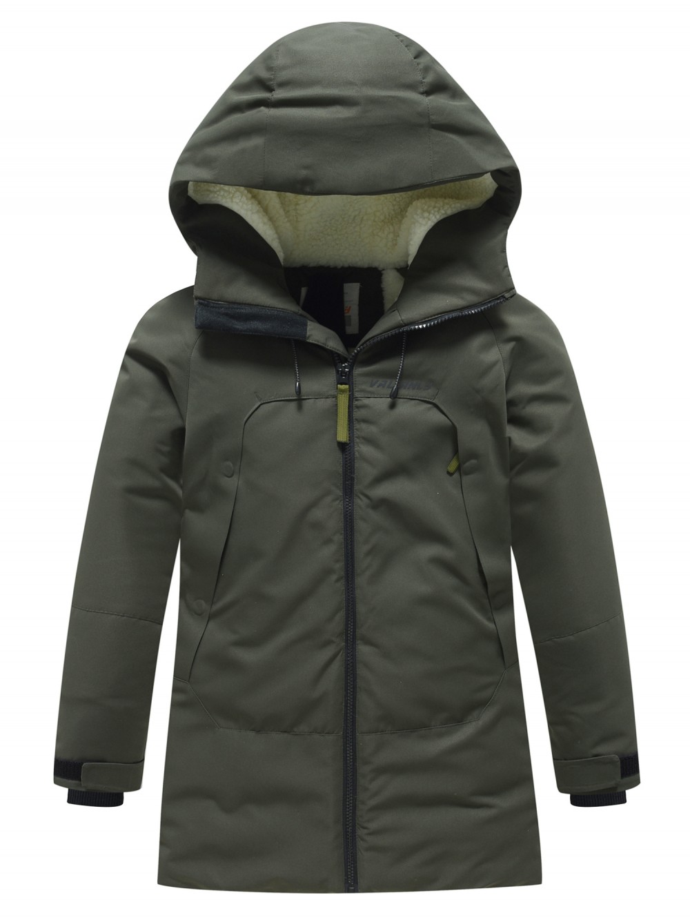 Парка зимняя подростковая для мальчика с капюшоном цвета хаки 9533Kh